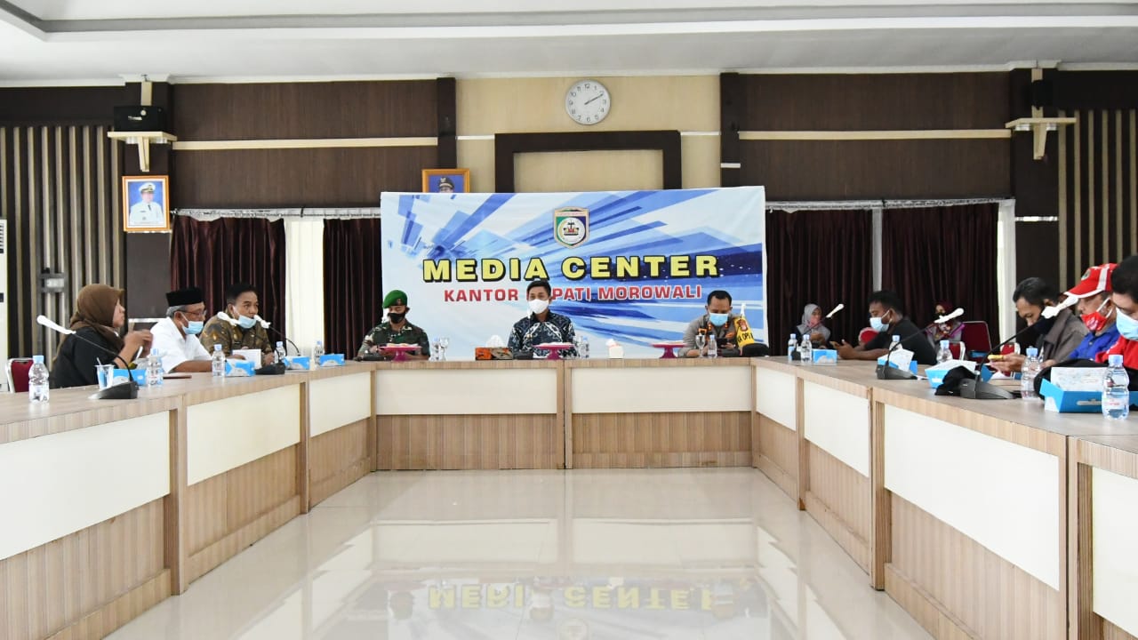 Konferensi Pers digelar untuk memberikan informasi kepada masyarakat melalui media lokal terkait tata cara pelaksanaan kegiatan selama bulan Ramadhan 1442 H di masa pandemi. Hal itu merupakan bentuk upaya pencegahan dan penularan Covid-19 di Kabupaten Morowali.