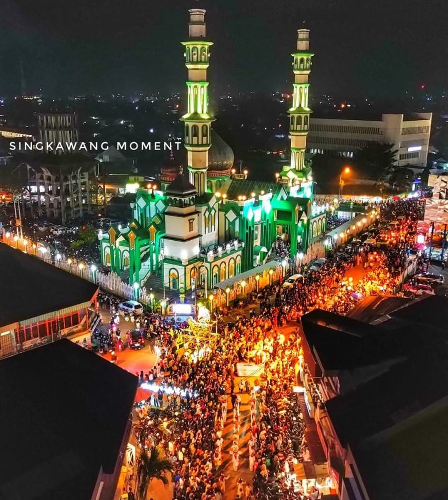 Sirine Masjid Raya Singkawang menggema kurang lebih selama sepuluh menit. Menyertai, menyemangati peserta pawai. Diantaranya berbagai ragam kelompok marching band, atraksi obor, mobil hias dan BPKS juga bermacam penampilan unik lainnya. Namun yang lebih mendominasi keunikan pawai obor, adalah nyala api obor yang begitu panjang di bawa oleh masing masing peserta.