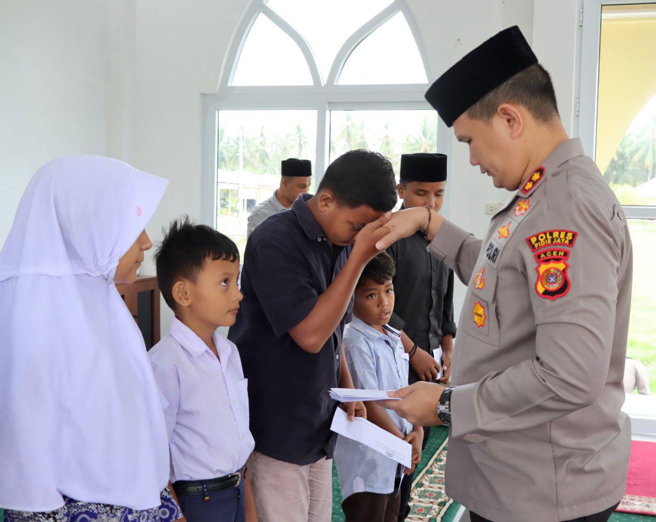 Santunan tersebut diserahkan langsung oleh Kapolres Pidie Jaya, AKBP Ahmad Faisal Pasaribu, S.H., S.I.K., M.H., yang hadir bersama para pejabat utama Polres.