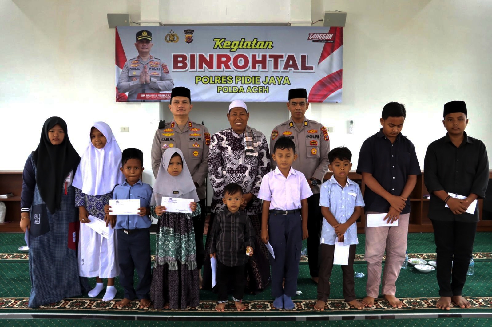 Nusantaranews. co. Pidie Jaya – Dalam upaya membentuk karakter personel yang religius dan berempati, Polres Pidie Jaya melaksanakan kegiatan Bimbingan Rohani dan Mental (Binrohtal) yang dirangkai dengan pemberian santunan kepada anak yatim.