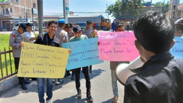 Koordinator aksi, Eka Armada Danu Samtala, mengatakan, mereka mendesak Polda Sumut segera memeriksa dan memenjarakan FA. Sebab FA dianggap sudah mencoreng kehormatan dewan perwakilan rakyat daerah (DPRD) dan mempermalukan warga Sumatra Utara.