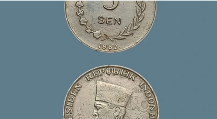 Koin kuno termahal ini menampilkan gambar Presiden Soekarno mengenakan peci dengan detail artistik tinggi.