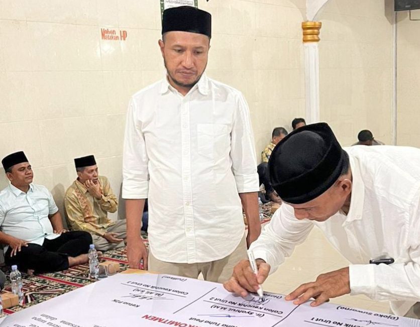 Mereka menyamparkan visi misi dan program kerjanya di hadapan massa pendukung, masyarakat dan panitia dan menandatangani integritas untuk patron kerja melaksanakan kampanye damai.
