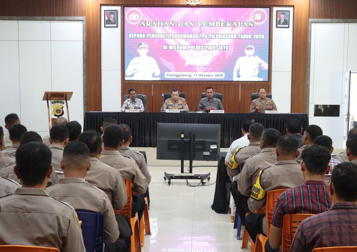 Polres Pidie Jaya menggelar kegiatan arahan dan pembekalan kepada personel pengamanan Tempat Pemungutan Suara (TPS).