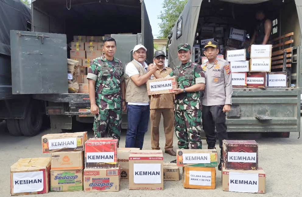 “Kami hanya menjadi perantara dari Kementerian Pertahanan untuk memastikan bantuan ini sampai kepada pemerintah daerah dan dapat segera disalurkan kepada warga yang membutuhkan.