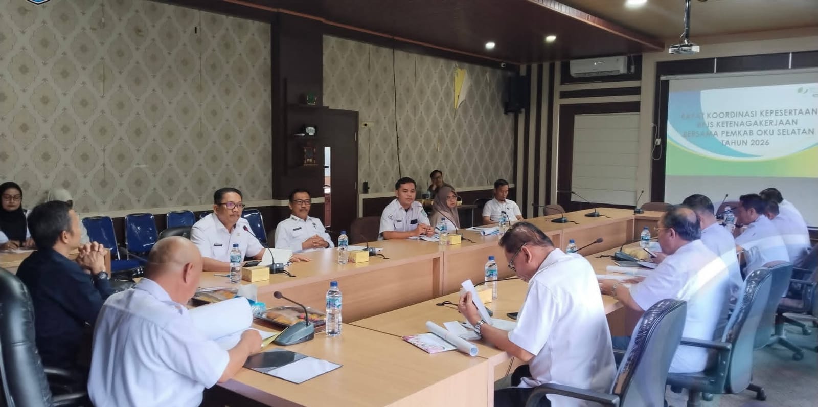 NUSANTARANEWS.co, Muaradua – Asisten Bidang Administrasi Umum Sekretariat Daerah Kabupaten Ogan Komering Ulu Selatan, H. Ramin Hamidi, S.E., M.H., memimpin Rapat Koordinasi Kepesertaan BPJS Ketenagakerjaan bersama Pemerintah Daerah Kabupaten Ogan Komering Ulu Selatan, dalam rangka pelaksanaan Program Jaminan Sosial Ketenagakerjaan Tahun Anggaran 2026, Rabu (21/01/2026).